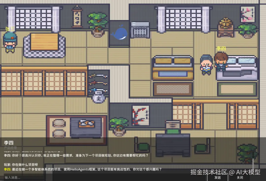在赛博小镇的案例中,我们将会使用Agent和Memory系统,尝试与游戏引擎结合构建一个智能体小镇。