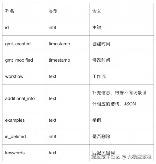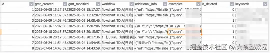 定义表结构如下,通过Postgres MCP,让agent在执行任务前,把用户的提问与表中的keywords进行匹配,找到符合场景的详细信息,就可以实现精准的"RAG"。(若使用ideaLab,可以在项目中提供查表接口,在ideaLab中封装成工具)