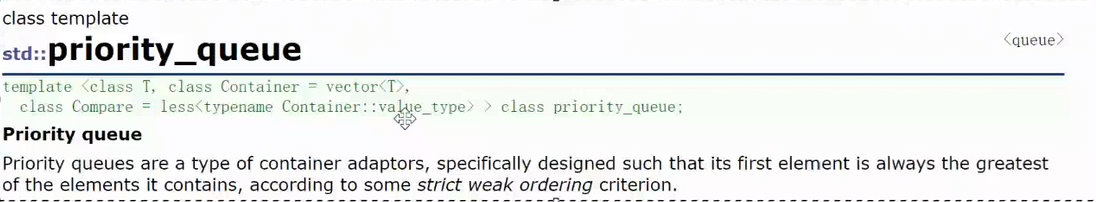 优先队列被实现为容器适配器,容器适配器即将特定容器类封装作为其底层容器类,queue 提供一组特定的成员函数来访问其元素。元素从特定容器的"尾部"弹出,其称为优先队列的 顶部。