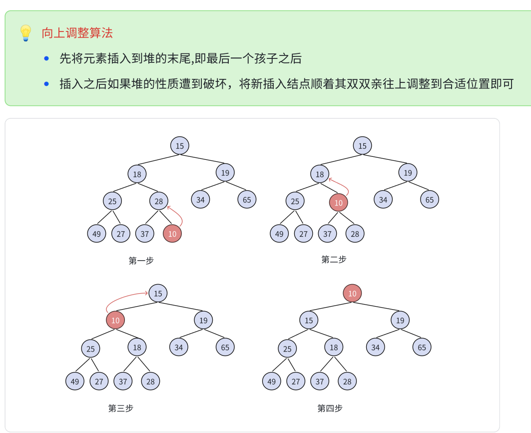用Push需要用到向上调整算法,因为需要确保它依然是大堆,如果忘了的同学可以看博主之前这一篇复习一下: