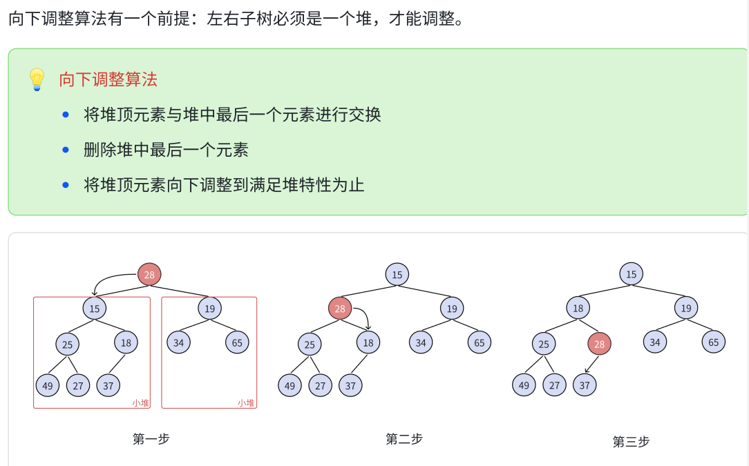 注意:大堆只是父节点比孩子节点大,但是不一定是递减排序!