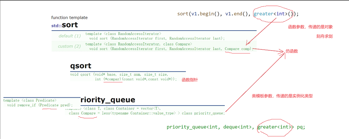 Less<int>类型的对象less(指定模板参数为int,表示比较整数)。 - 两种调用方式: