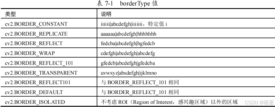 - borderType 是边界样式,该值决定了以何种方式处理边界。