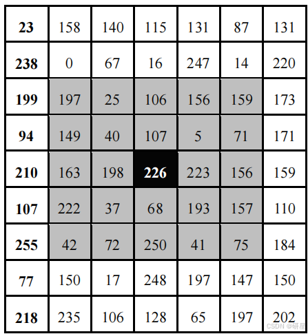 用邻域内所有像素值的中间值 来替代当前像素点的像素值。