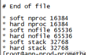 sql[root@app-prod-prometheus ~]# more /etc/security/limits.conf ### "*"表示影响所有用户的软限制和硬限制