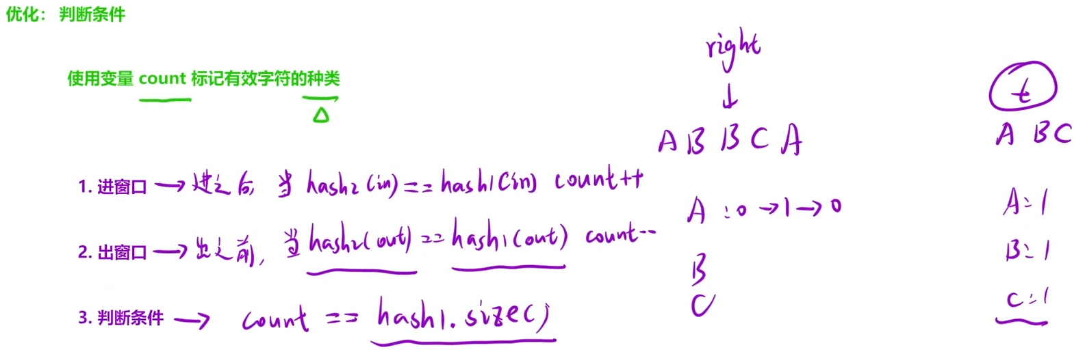 if(hash2[out]-- == hash1[out]) count--;//出窗口+维护count