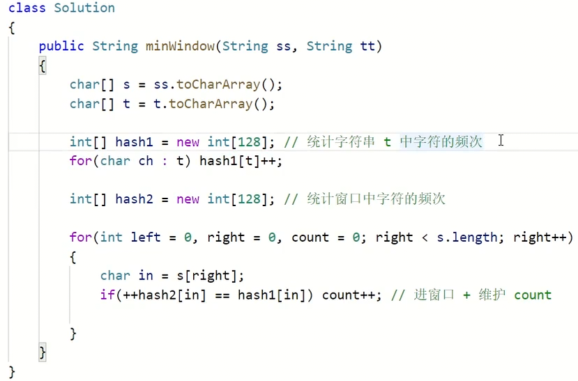 int[] hash2 = new int[128];//用来统计窗口中字符出现的频次