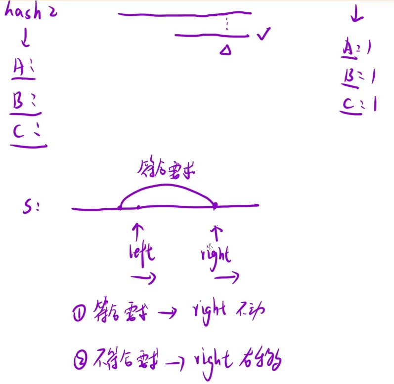 这个时候发现 left和right都往一个方向走 联想到滑动窗口