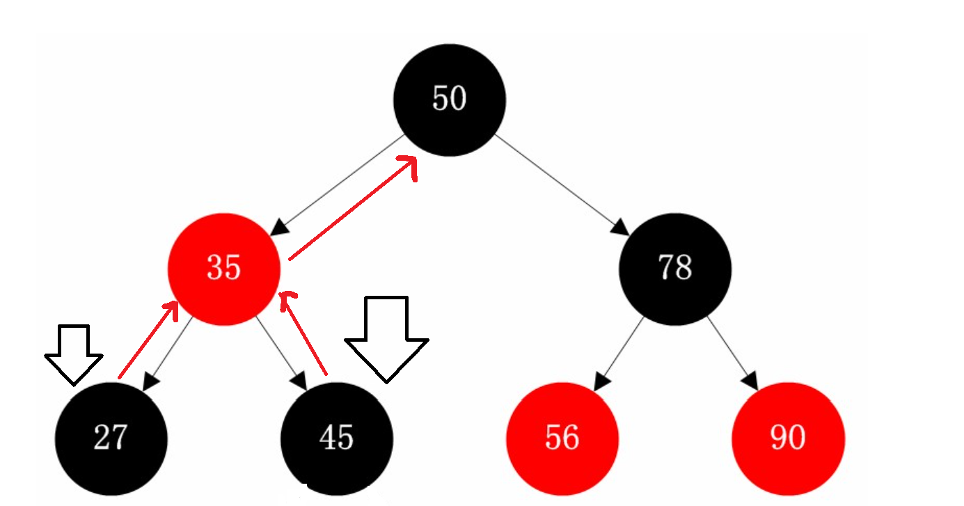 从中序遍历的角度分析,下一个遍历的就是更大的节点,那么对于27而言35就是下一个,而50是45的下一个