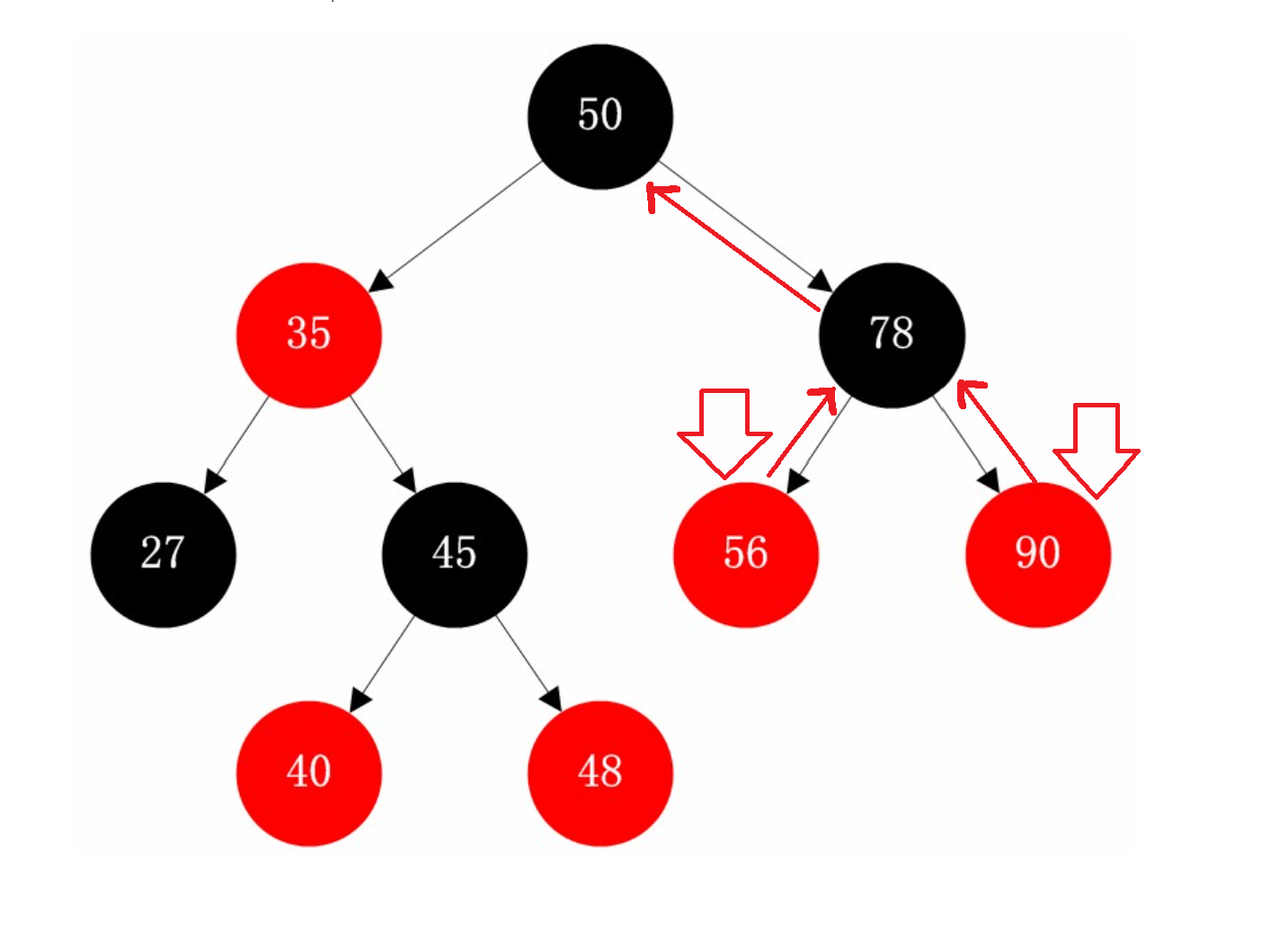 那么对于--就反过来了,我们对56和90--,用中序遍历反过来,则90的上一个是78,而56的上一个到了50
