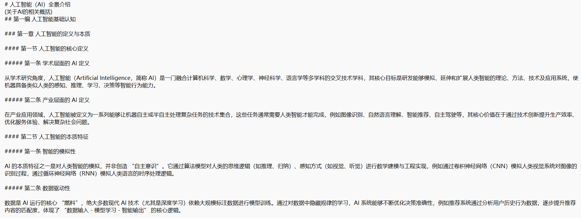 处理的实际内容不便展示,所以用AI生成了类似结构的markdown文档,示例如下: