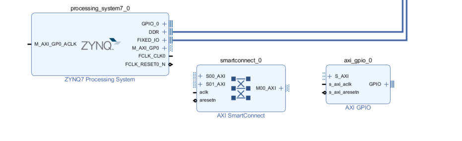 接下来需要给PL进行控制外设,但是上面的还不够完整还需要配置ps与gpio的axi互联模块