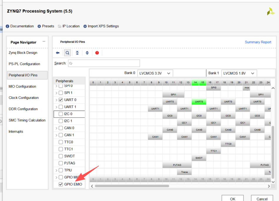在原有的基础上进行扩展,前面说了MIO 是通过ps的GPIO口直接与pin脚相连控制外设器件的,而EMIO是通过ps的GPIO到FPGA的pl侧进行处理,然后在到外部管脚。现在拓展EMIO外设