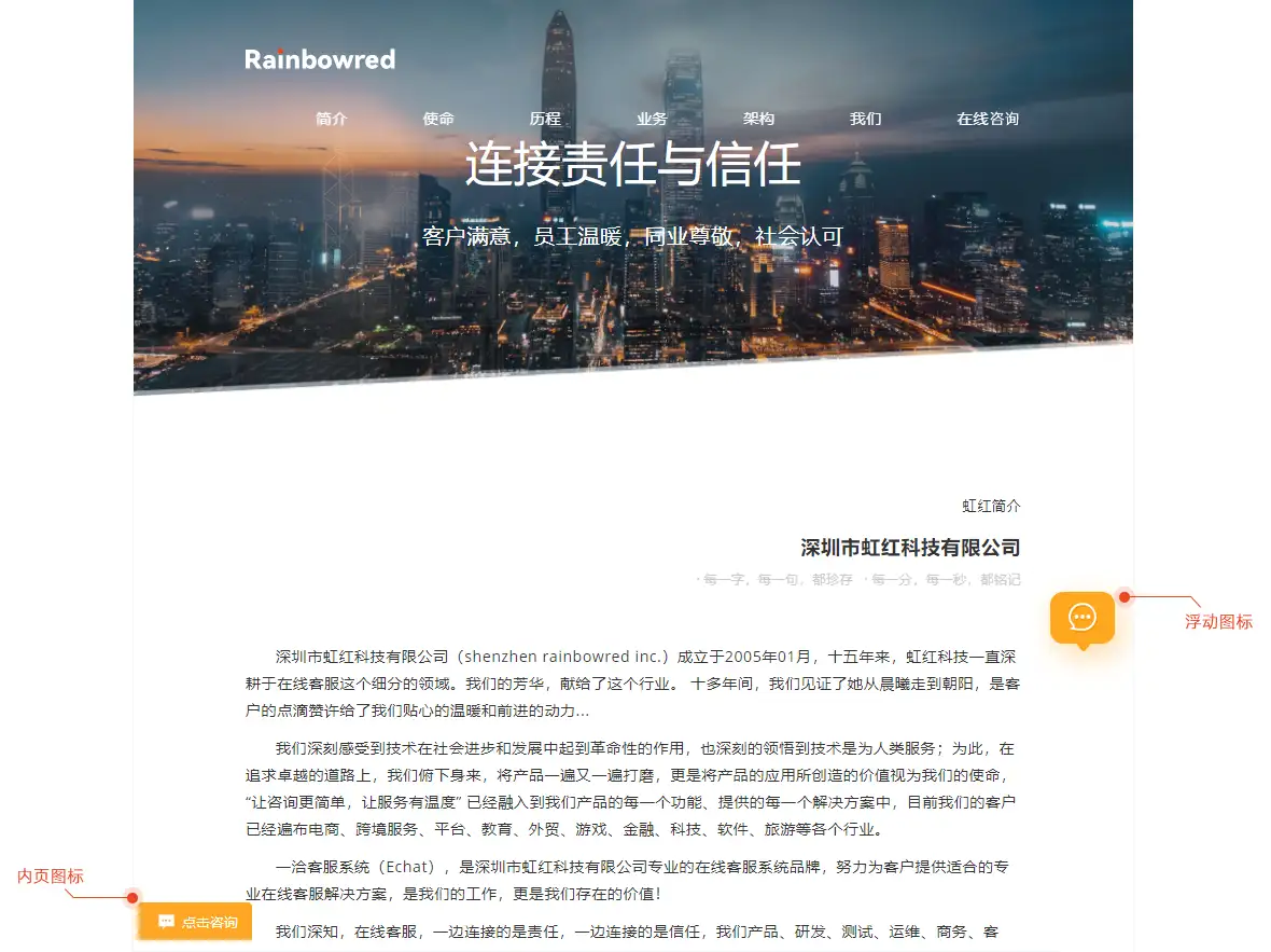 - 添加 echatJs的网页会自动生成浮动图标和内页图标