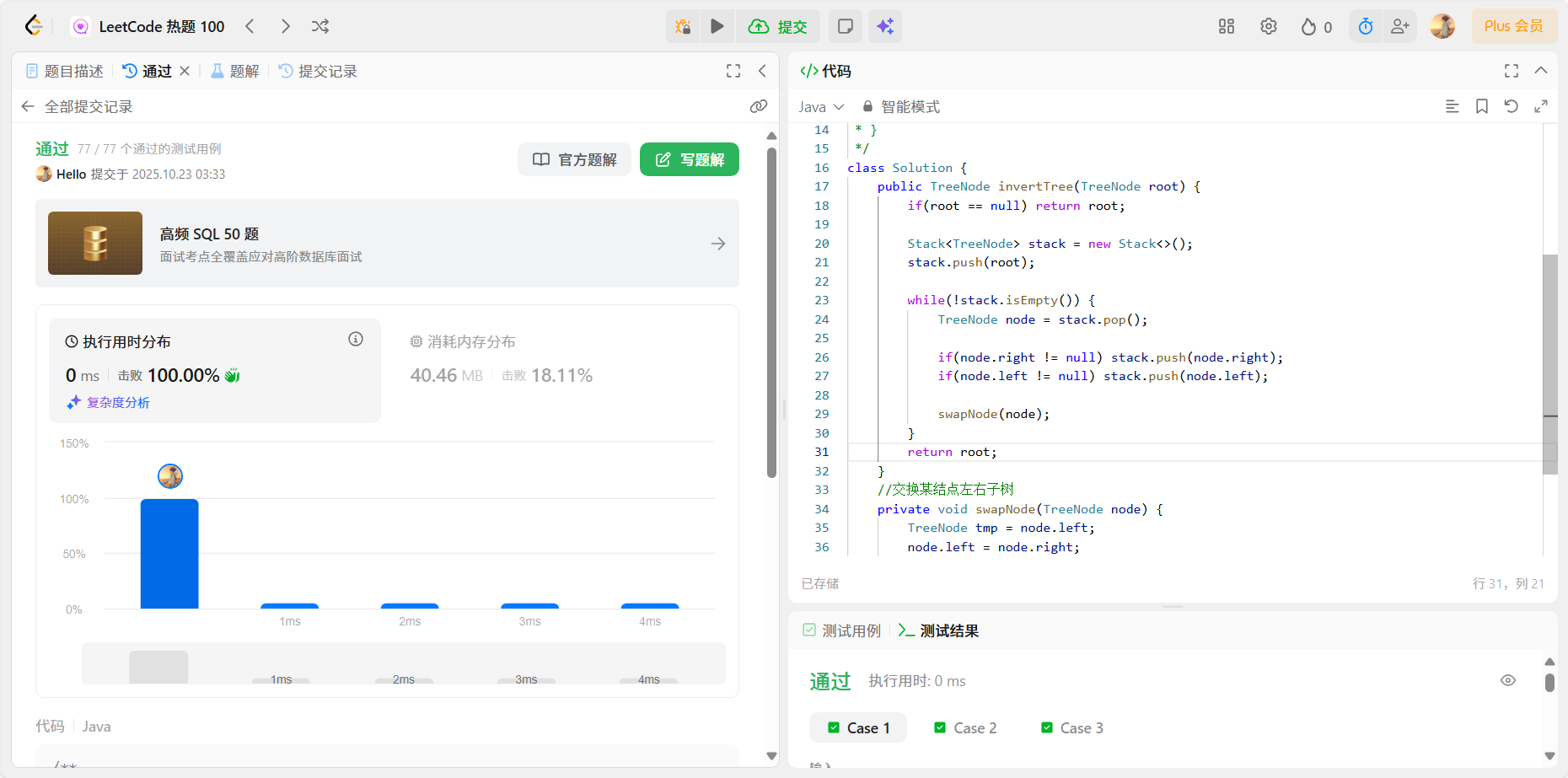直接正常入栈就行,把栈顶结点直接交换左右子树就行。也就是,从根节点开始,交换左右子树,然后左节点,最后右结点。