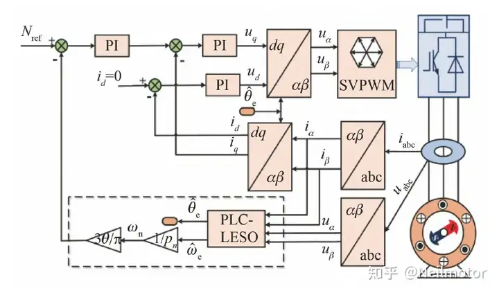 PMSM中、高速域的无位置传感器控制中,传统LESO受带宽影响对反电势观测会产生观测时滞,进而导致估算转子位置和转速信息误差较大。为解决此问题,采用了一种基于相位超前校正线性扩张状态观测器( Phase Lead Correction LESO, PLC-LESO)的PMSM无位置传感器控制策略。首先在传统LESO基础上引入相位超前校正单元,设计PLC-LESO对反电势进行观测,然后利用归一化锁相环( Phase-Locked Loop, PLL)对转子位置和转速信息进行估算。