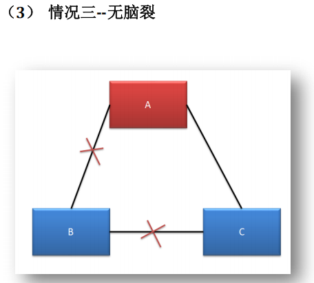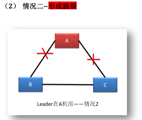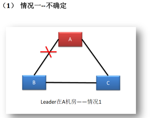 若新 Leader 出现在 C 机房,A 机房中的 Leader 则会自动下课,所以不会形成脑裂。