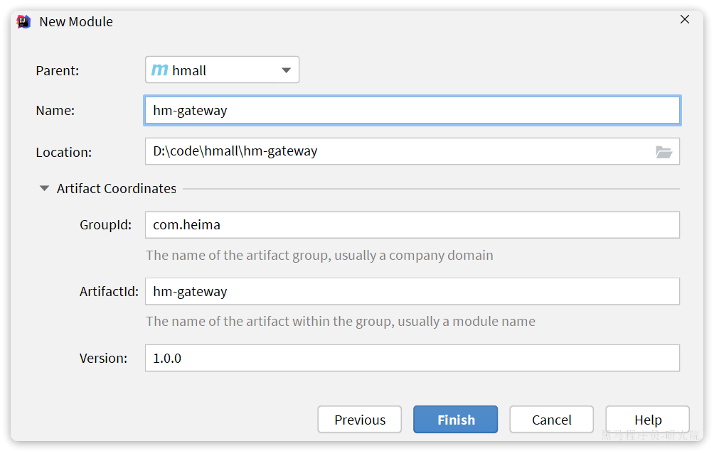 首先,我们要在hmall下创建一个新的module,命名为hm-gateway,作为网关微服务: