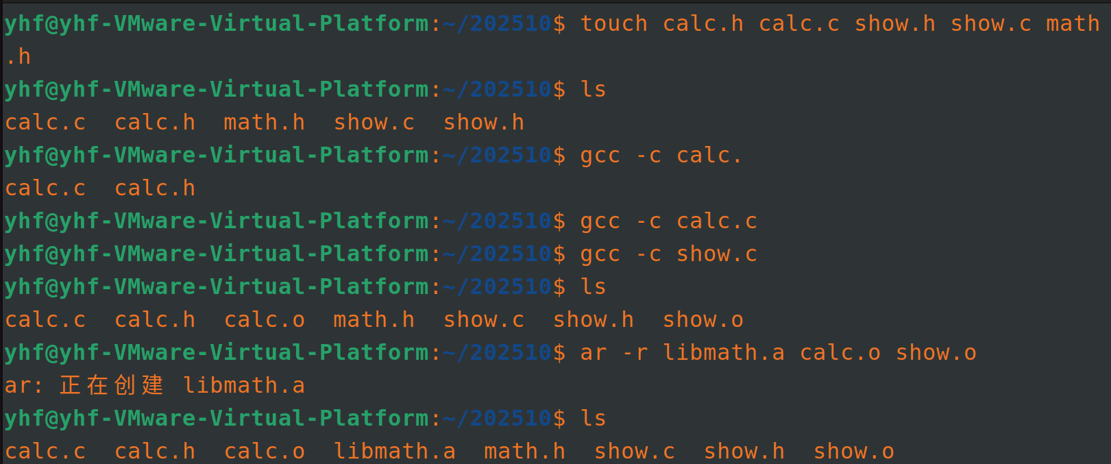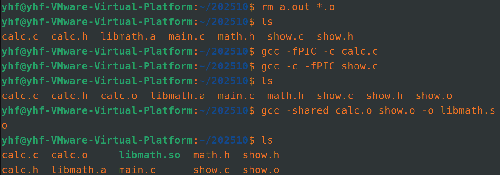 gcc -shared -c -fPIC calc.c show.c -o libmath.so