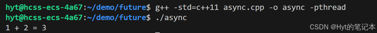std::cout << "1 + 2 = " << result.get() << std::endl;