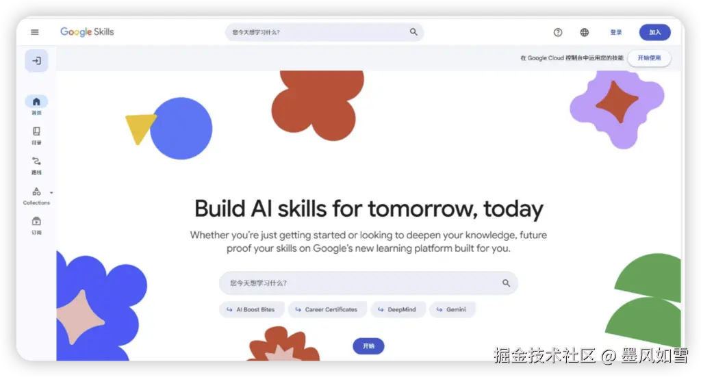 各位身处或心向AI浪潮的朋友们,相信最近都感受到了这股技术变革的加速。技能迭代之快,常常让人目不暇接,生怕一不留神就被时代抛弃。但好消息是,谷歌带着它的"杀手锏"来了------Google Skills,一个旨在全面武装你的AI时代学习平台,已于2025年10月下旬正式上线,它可不是来凑热闹的。