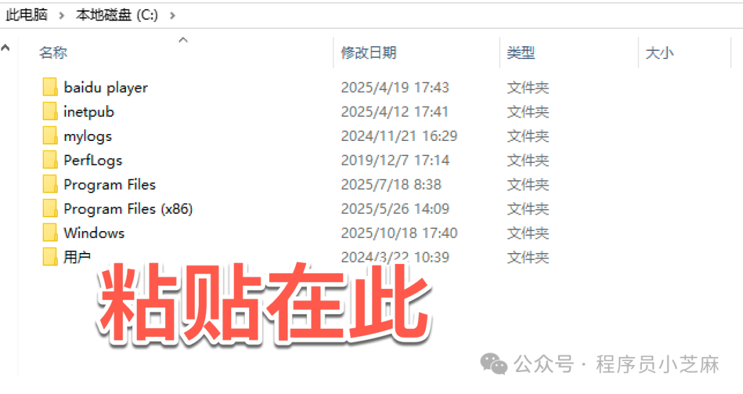 8、打开电脑 C 盘根目录,ProgramData 粘贴在此