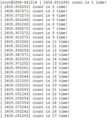 如下图所示,我们加载该驱动,串口控制台提示如下。