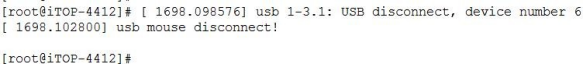 接着我们拔掉 USB 鼠标,如下图所示,打印了"usb mouse disconnect!"这部分信息,是和我们 disconnect 函数中的打印对应。