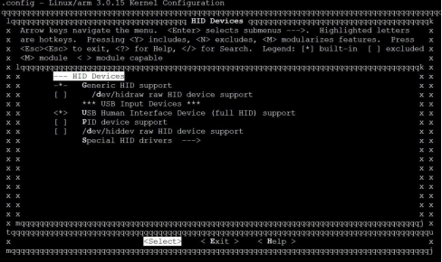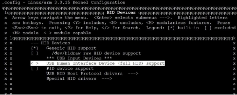 取消配置"USB Human Interface Device (full HID) support",然后退出保存,重新编译内核,烧写到开发板中,准备后续的实验。