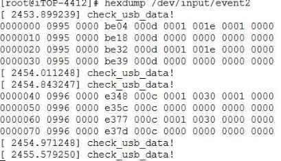 接着在控制台使用命令"hexdump /dev/input/event",鼠标左键和右键打印如下图所示信息。