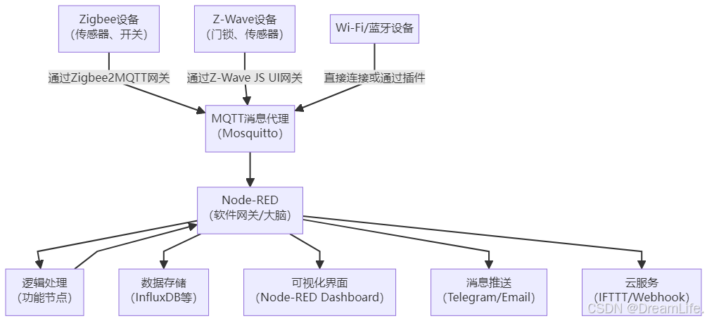 | 通信协议 | MQTT(Mosquitto服务器) | 设备与Node-RED之间的消息传递 |