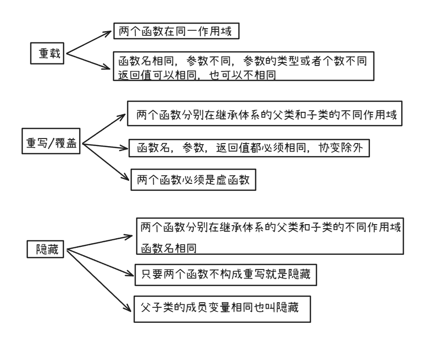 派生类中有一个和基类的返回值类型、函数名字、参数列表完全相同的虚函数,称派生类的虚函数重写了基类的虚函数。