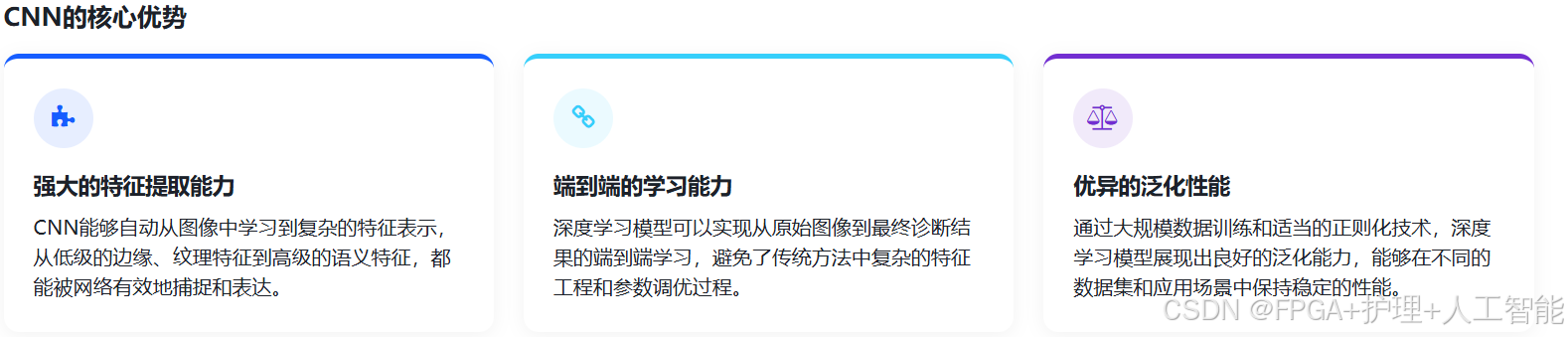 端到端的学习能力:深度学习模型可以实现从原始图像到最终诊断结果的端到端学习,避免了传统方法中复杂的特征工程和参数调优过程。