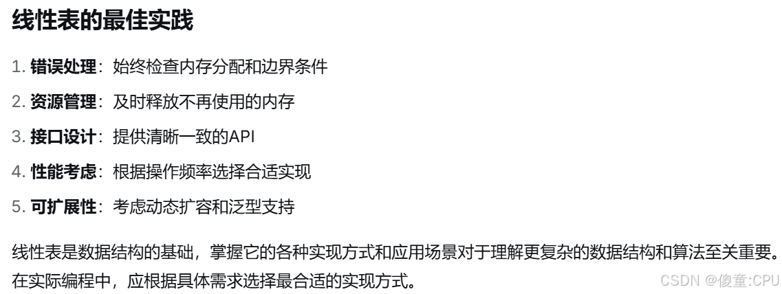 线性表是最基本、最常用的一种数据结构,它是由n个数据元素组成的有限序列。在C语言中,线性表可以通过数组或链表来实现。