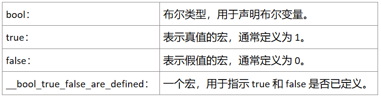 - [ 2、bool 是 _Bool 类型的别名。](# 2、bool 是 _Bool 类型的别名。)