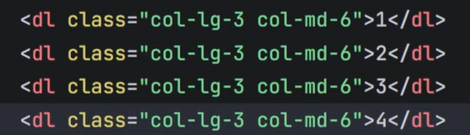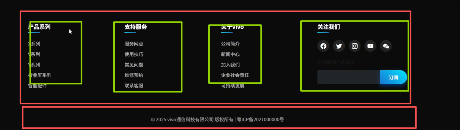 1.一个footer盒子里面有一个padding值;container里面放上下两个盒子,再用row包含第一行,第一行前三个是dl这种,先考虑响应式,增加断点,刚开始一行4个,lg之后一行放2个,md之后一行放一个