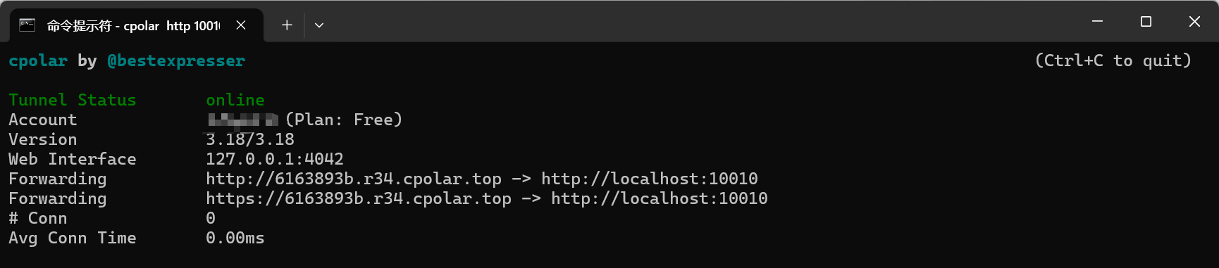 同时可以看到命令行窗口关闭之后再看10010端口的临时域名就变化了,所以建议还是使用安装的工具不要用命令行窗口。至于后续这个临时域名要如何使用就根据自己需求来了