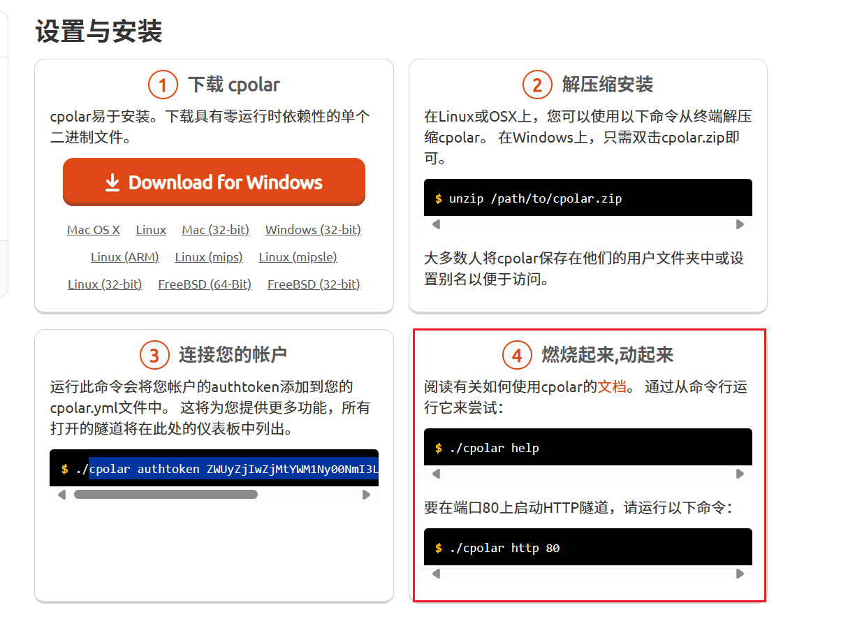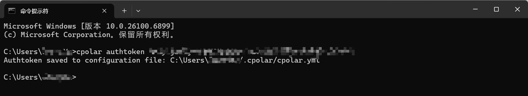 将给出的cpolar authtoken xxxxxxx复制到命令行窗口执行,注意复制的时候前面的./不要带上