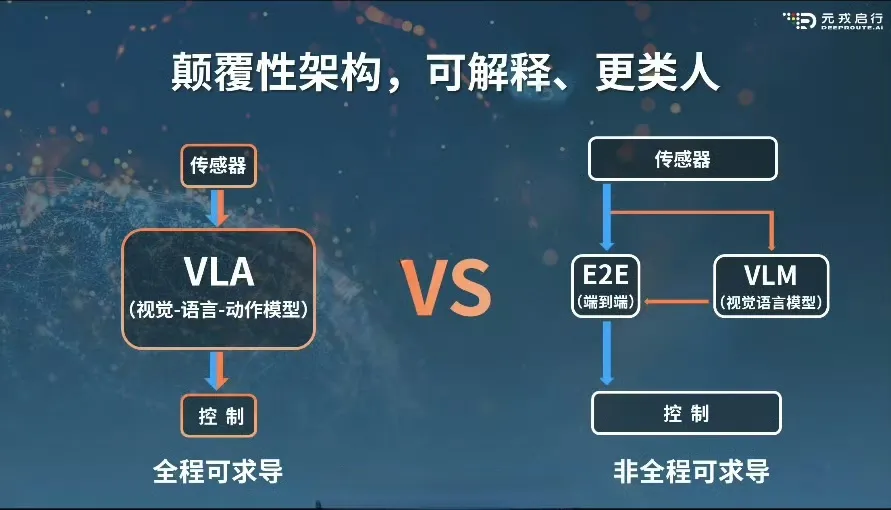 全程可求导和非全程可求导的区别在于,无论是数据驱动的端到端还是知识驱动的 VLA,都能高效率、低成本地通过自动化的数据闭环实现驾驶场景数据驱动,而 VLM 视觉语言模型无法借助数据闭环,实现高效率、低成本的数据驱动。