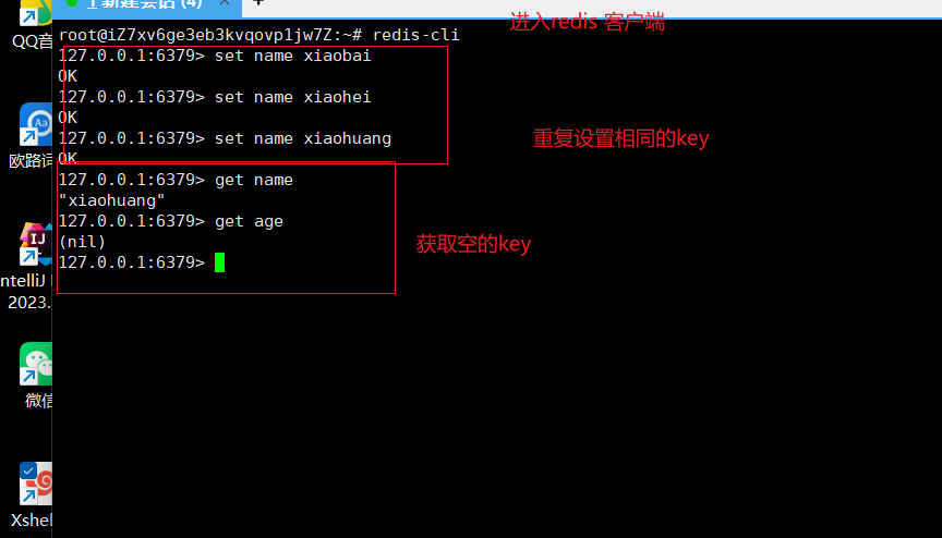 get 和 set 操作的 key value 都是字符串, 但是我们自己写不需要加""