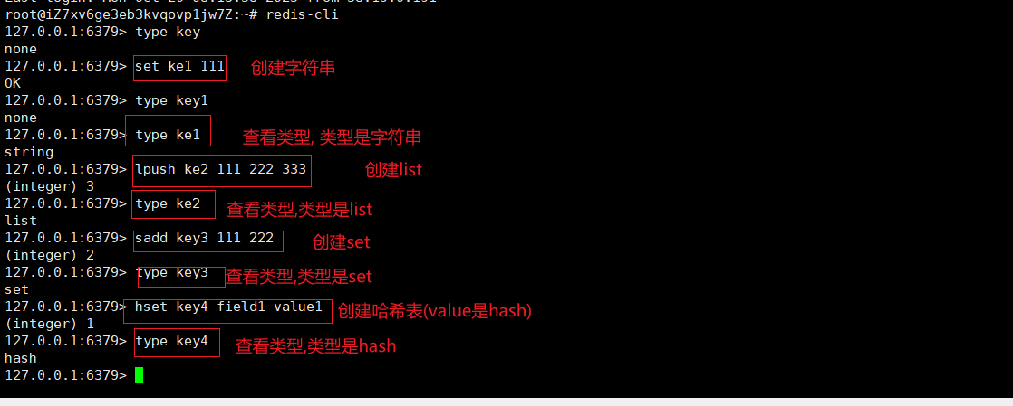 type 返回 key 对应的数据类型(也就是value的数据类型)