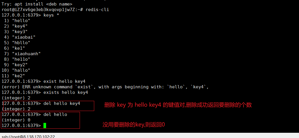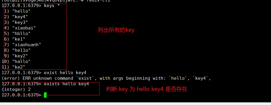 语法: exist 要判断是否存在的key...(可以写多个key来一起判断)