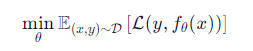 - 衡量模型预测 fθ(x) 与真实标签 y 的差距。