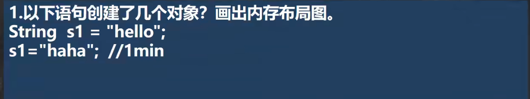 以上语句创建了两个对象,首先创建了一个 "hello" 对象,运行第二条语句时,会看常量池是否有 "haha",没有则会创建,指向hello的 s1 指向haha