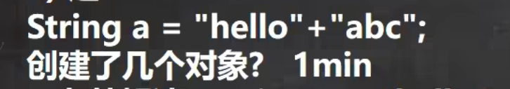 只创建了一个对象,String a = "hello" + "abc"; // ==> 优化等价 String a = "helloabc";编译器不傻,做一个优化,判断创建的常量池对象,是否有引用指向