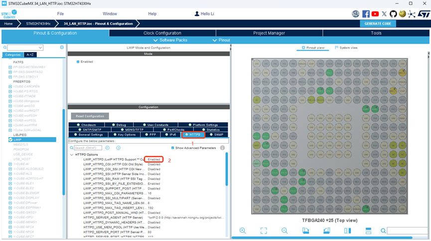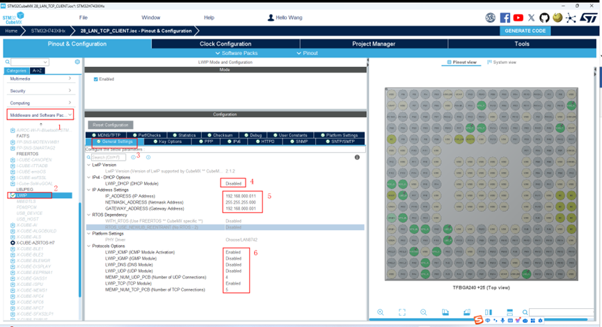 我们参考前面章节STM32H743-结合CubeMX新建HAL库MDK工程,打开CubeMX软件,重复步骤不再展示。我们来看配置MPU配置、以太网部分和Lwip部分配置如下图所示: