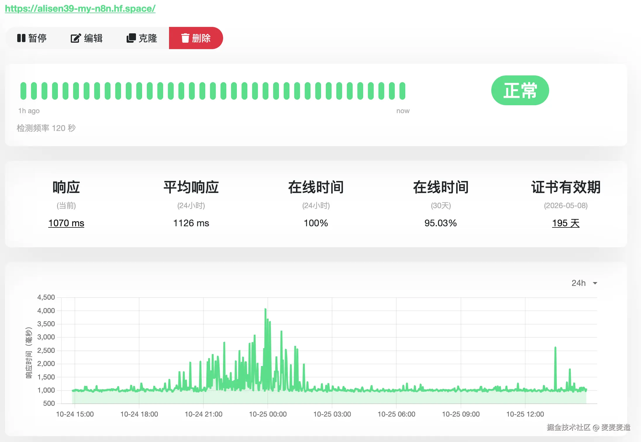 所以我的做法是在我的 nas 上部署了一个 uptime 服务,120s 访问一下首页。