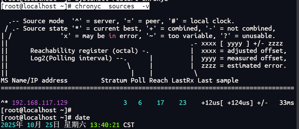 实验一已经将服务端192.168.117.129与aliyun时间服务地址同步。