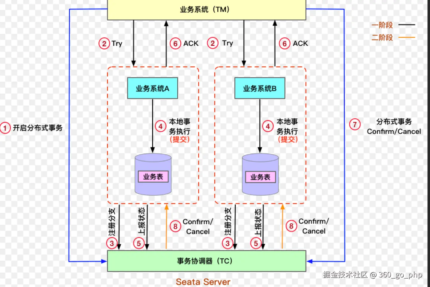 - TCC(Try-Confirm-Cancel):通过将事务分为Try、Confirm、Cancel三个阶段来实现分布式事务,适用于长时间的业务操作。