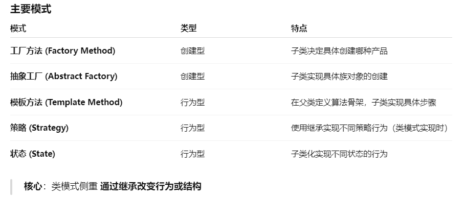 - 对象模式 = 组合 → 运行时可变,耦合低